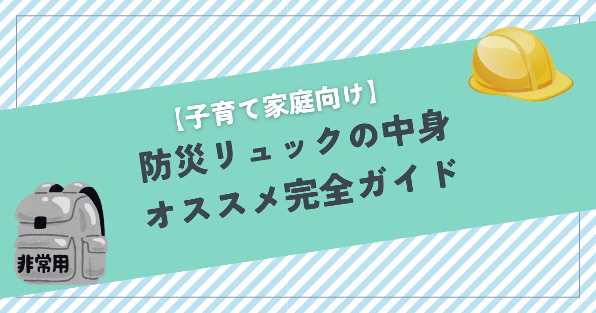 本記事では、子育て家庭・乳幼児のいる家庭だからこそ必要になる 防災リュックの中身のオススメアイテムを、理由つきでわかりやすく解説します。